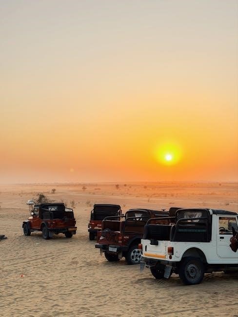 Stopping the Engine: To shut down, bring the vehicle to a complete stop․ Shift the transmission into ‘Park’ and firmly apply the parking brake․ Turn the ignition key to the ‘Off’ position and remove the key․